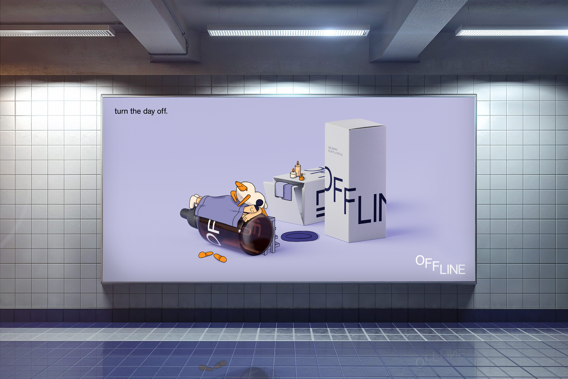 Offline invites people to “turn the day off” — using CBD as a gentle switch from stress, anxiety, and sleeplessness to calm, clarity, and comfort.