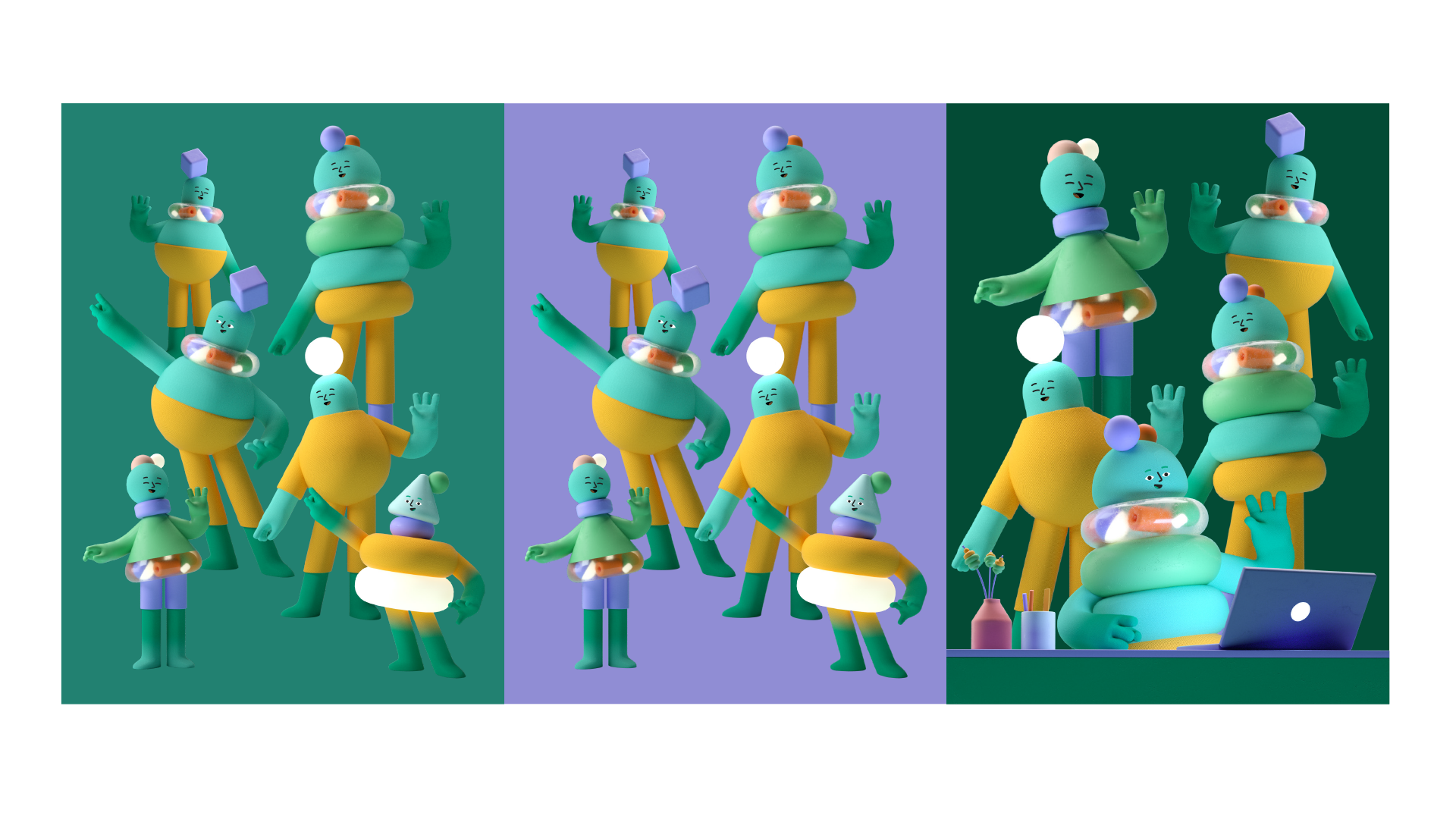 We were hired by a massive tech company to design their new visual system from scratch: characters, illustrations, and a flexible language to be used across all their internal and external comms, made for 60,000+ employees.