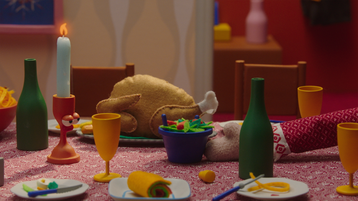 It’s no secret that we love mixing techniques and styles, so adding a 2D animated sequence for the daydreaming part of the film felt natural. We wanted this moment to feel warm, cozy, and hopeful – Thick and loose lines combined with relaxed, harmonious coloring conveyed exactly what we wanted. The team captured the essence of this sequence beautifully, crafting it with care and attention, one frame at a time. <3